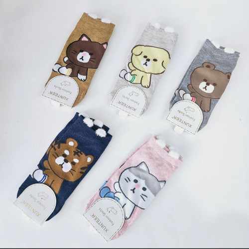 جوراب کالج دخترانه طرح حیوانات رنگ آبی و سفیدناموجود