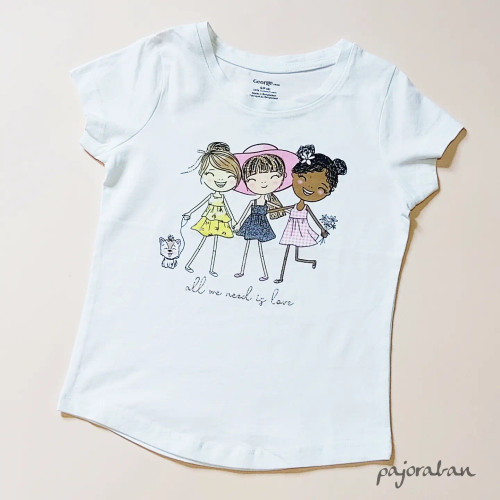 تیشرت دخترانه سفید طرح دخترانه شادناموجود