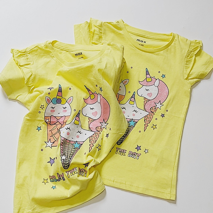تیشرت دخترانه با طرح یونیکورن بسیار شیک و جذاب قیمت مناسب کاملا مناسب فصل تابستان عاشق رنگ زردش می شید