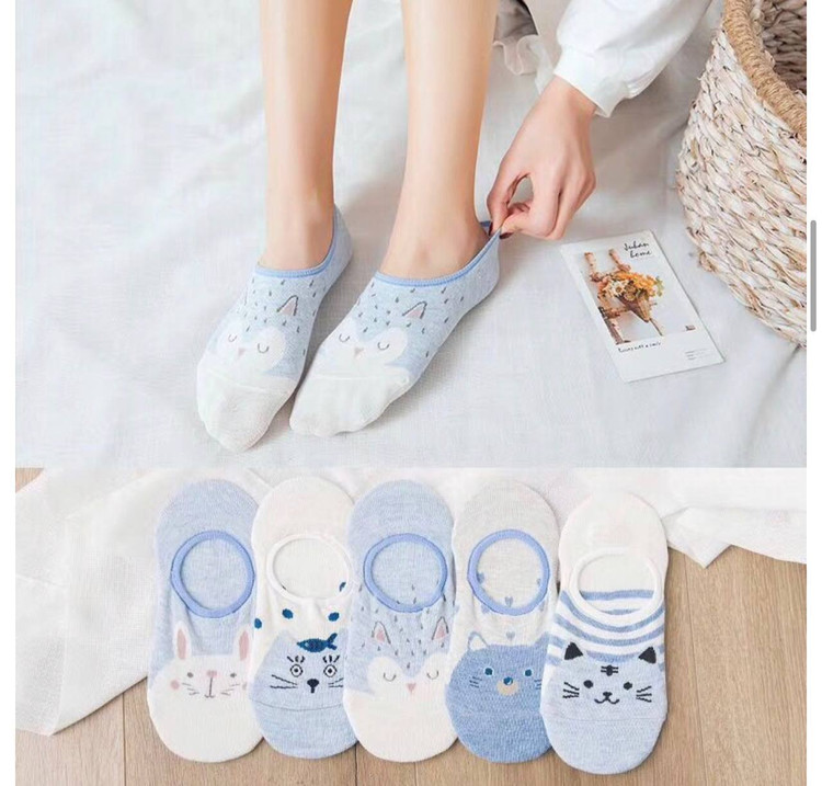 جوراب کالج دخترانه طرح حیوانات رنگ آبی و سفید
