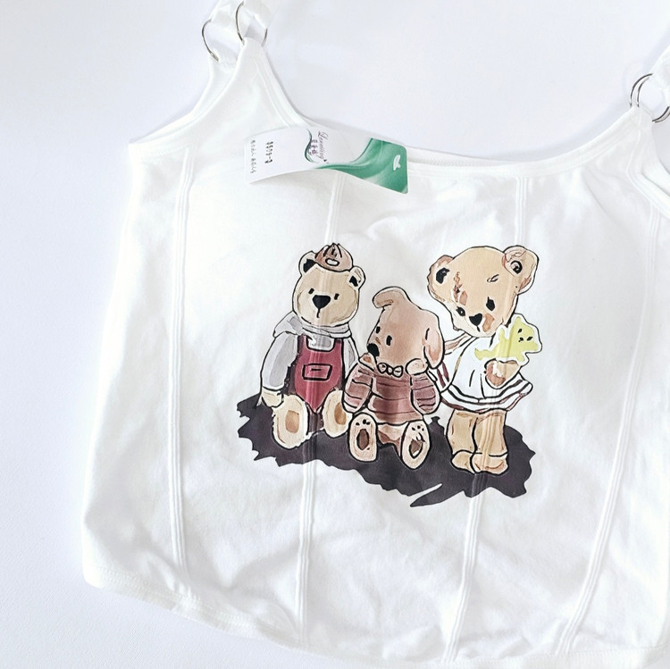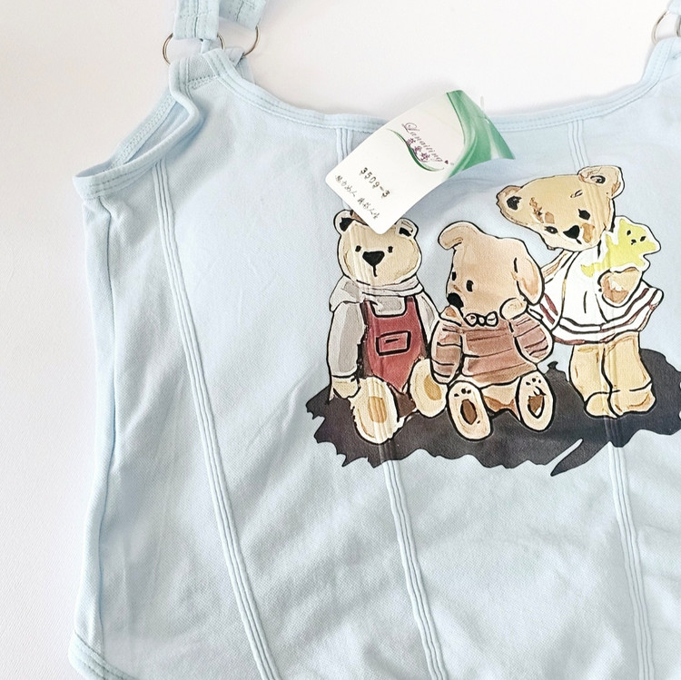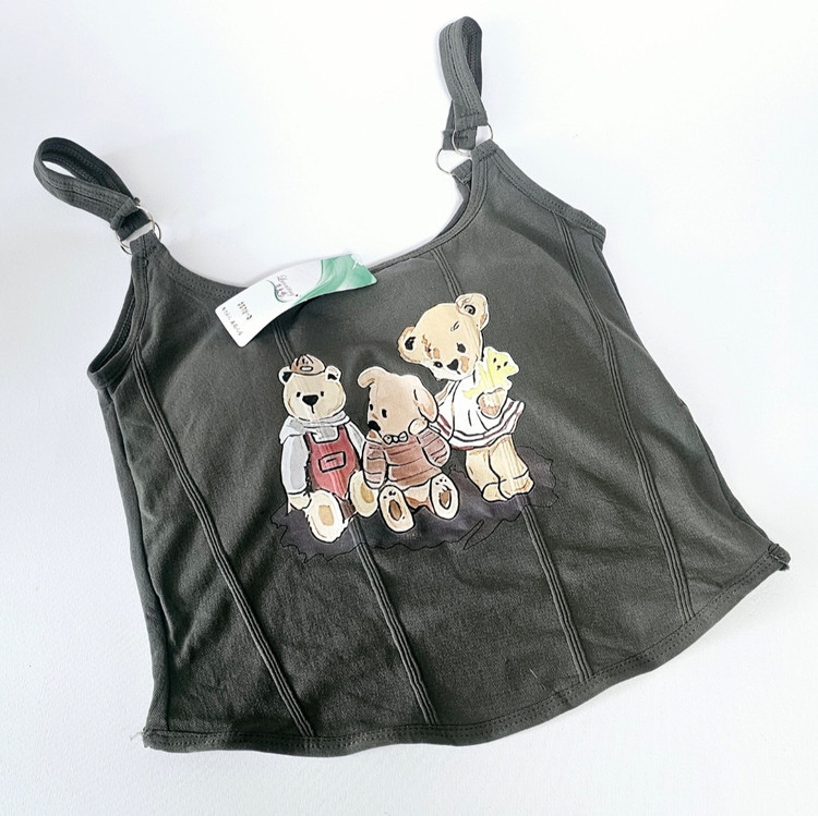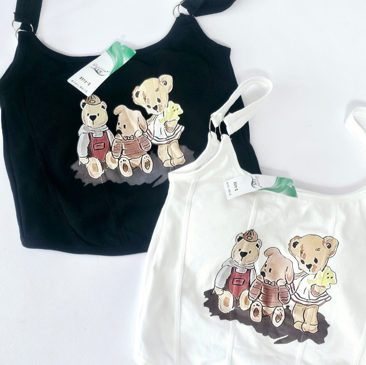 ✔ **طرح منحصربهفرد:** سه خرس کارتونی با حالتهای بامزه، ظاهری جذاب و متفاوت به این تاپ دادهاند.