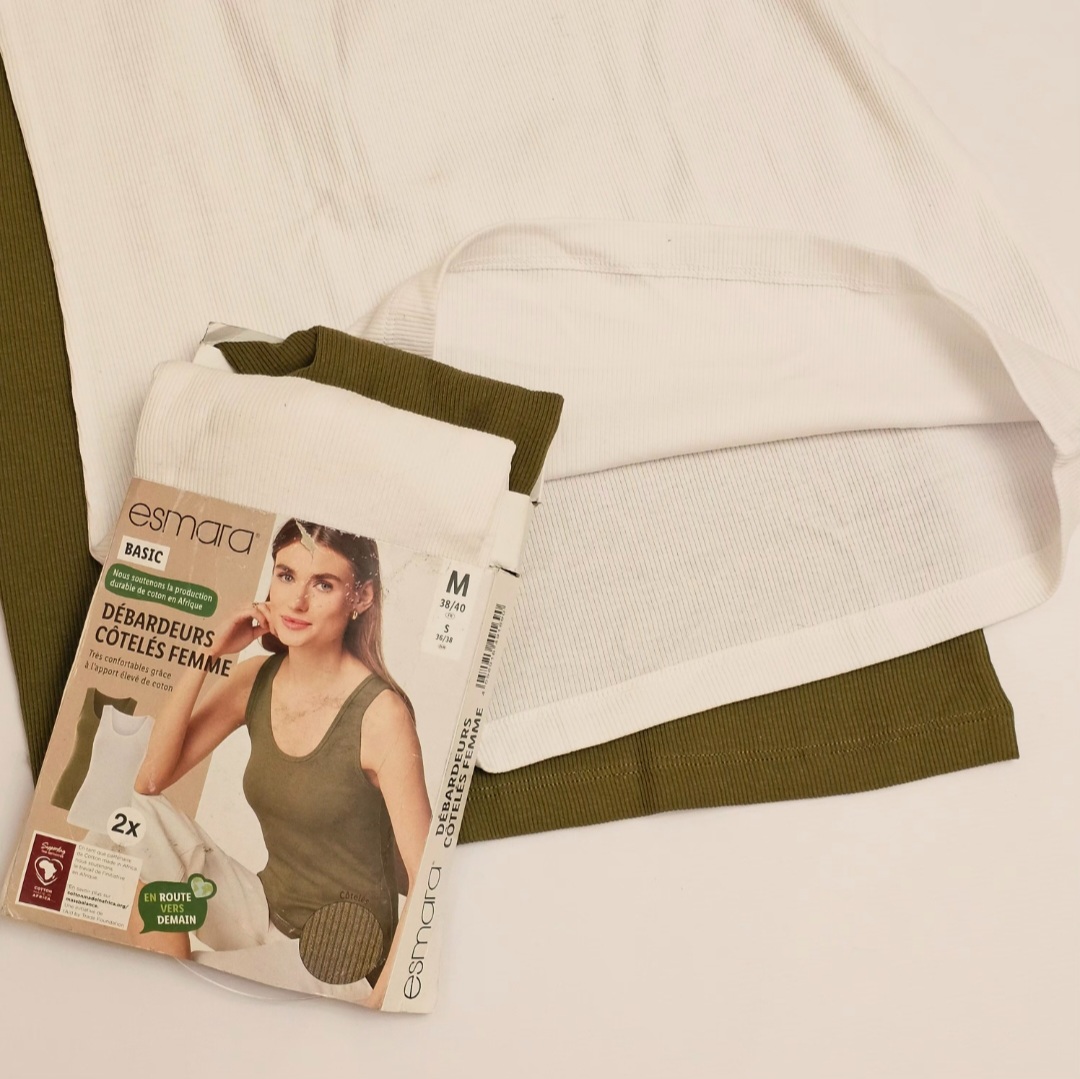 تاپ کبریتی زنانه اسمارا(esmara) در پک دوتایی با رنگهای پرطرفدار سبز و سفید، انتخابی کاربردی و شیک برای استایل روزمره و چهارفصل شماست. این تاپها با طراحی ساده و مینیمال، بهراحتی با انواع شلوار، دامن و شورتک ست میشوند و برای استفاده در خانه، بیرون یا زیر مانتو کاملاً ایدهآل هستند.