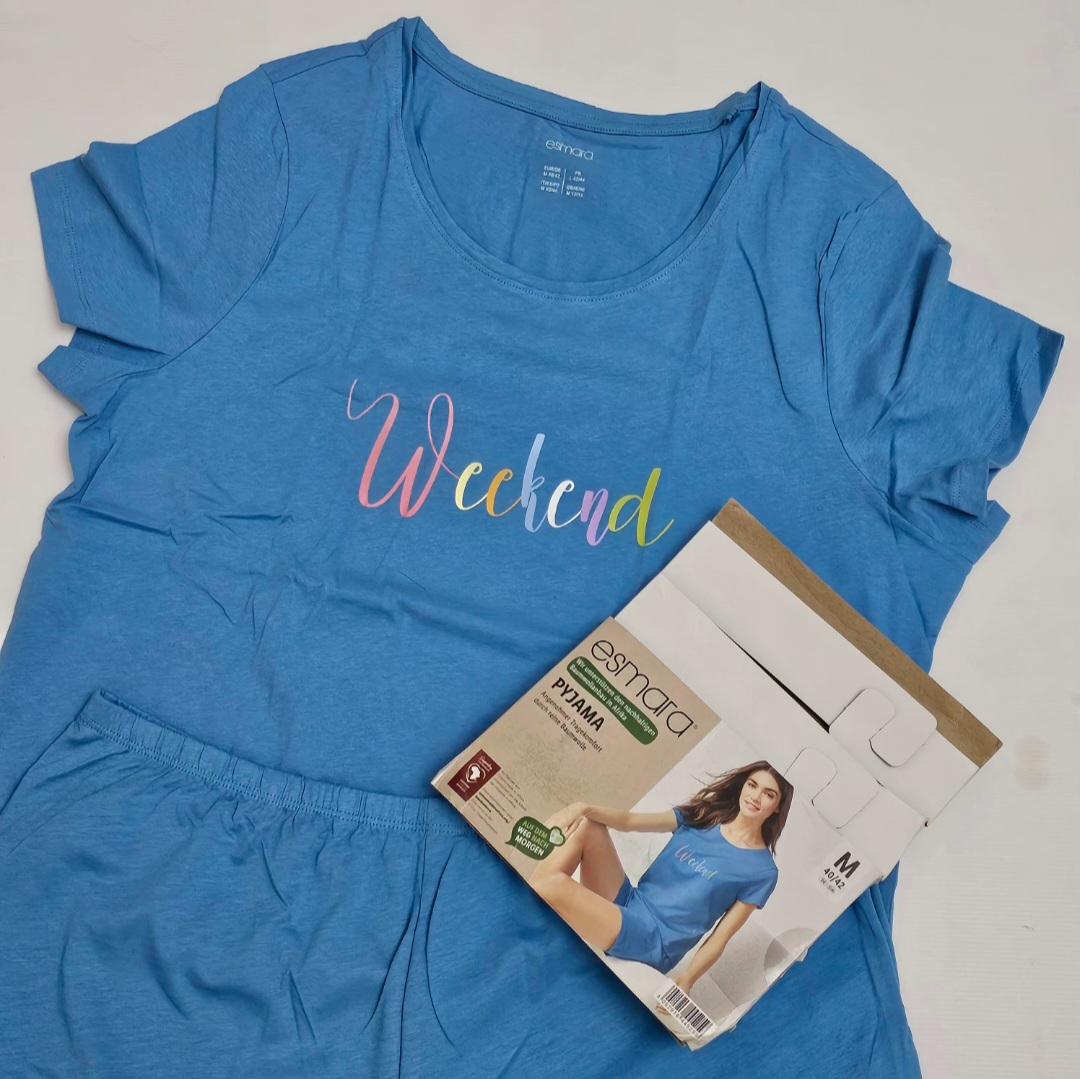 ست تیشرت و شلوارک زنانه اسمارا آلمان رنگ آبی | لباس راحتی اصل Esmara